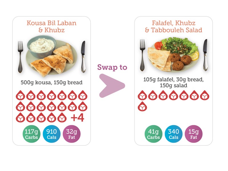 Please note for images on this page: one droplet of blood glucose icon represents 5g of carbohydrates.