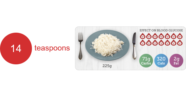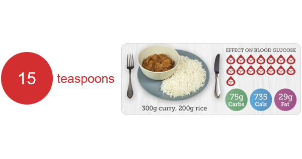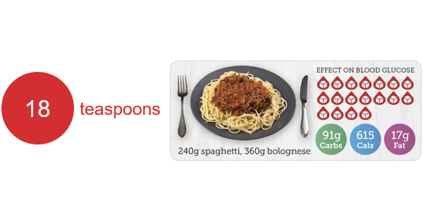 Sometimes the amount of carbohydrate in one meal can be shocking. For example, a few pieces of bread or plate of pasta or rice could contain the equivalent of more than 15-20 teaspoons of sugar.