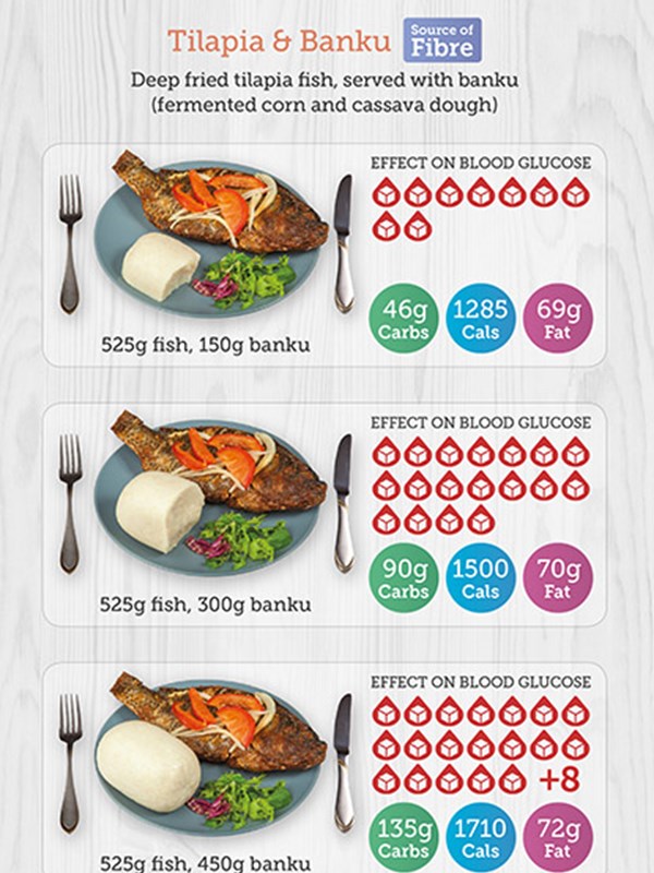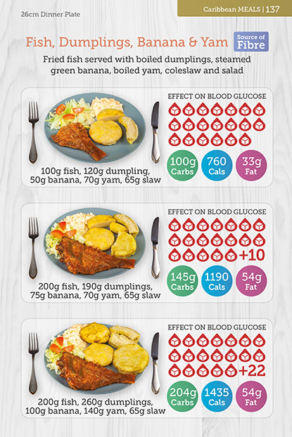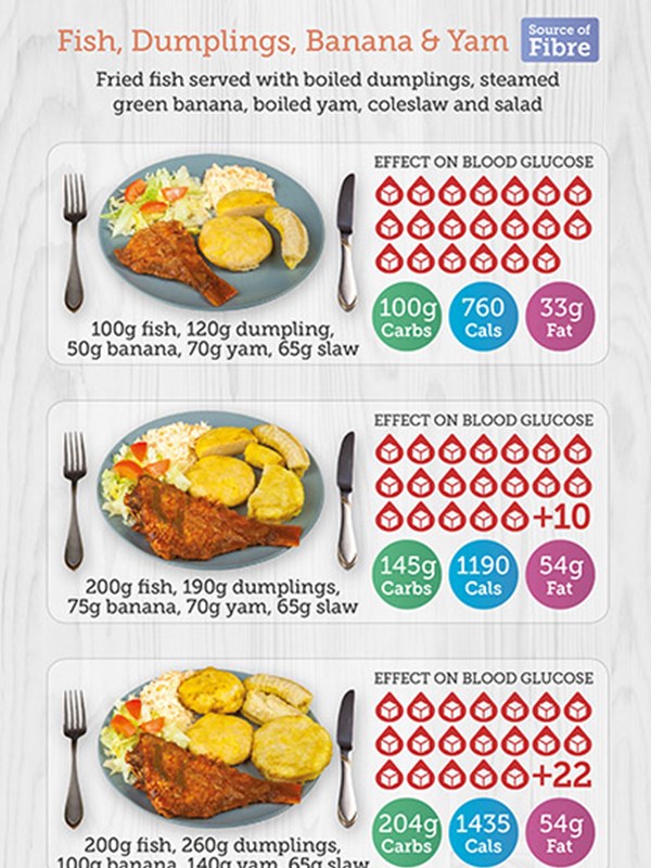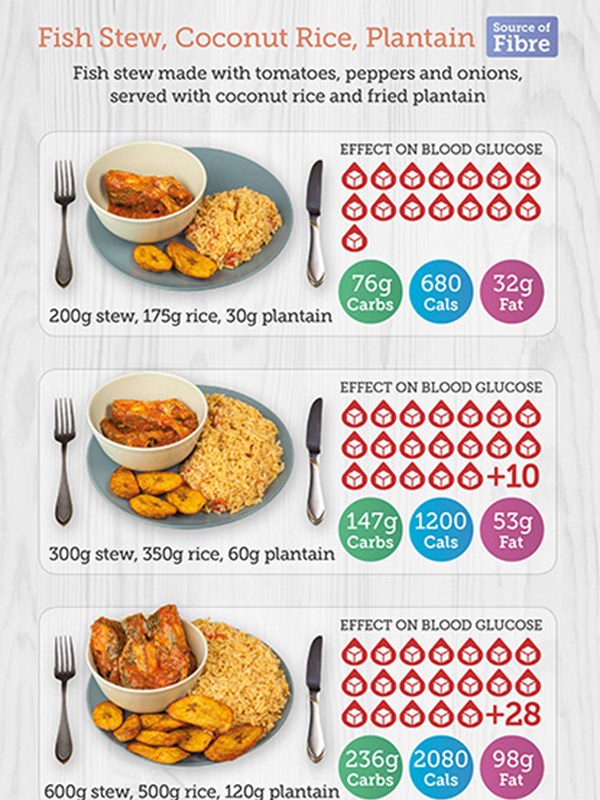 Some African and Caribbean foods contain very high amounts of starchy carbs, for example a meal with rice and plantain or a meal with fufu could result in you eating starchy carbs equivalent to more than 25 teaspoons of sugar in one meal.
