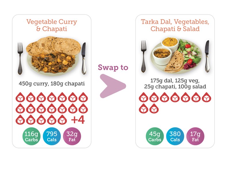Please note for images on this page: one droplet of blood glucose icon represents 5g of carbohydrates.